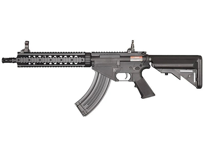 Il Cyma AR47 RIS CM650A è una delle repliche softair elettriche più innovative sul mercato: unisce il corpo dell'M4 con il caricatore AK-47, proprio come il leggendario SR-47 usato dalle forze speciali per poter utilizzare le munizioni nemiche in campo. Un'arma tattica, versatile e dall'estetica unica.