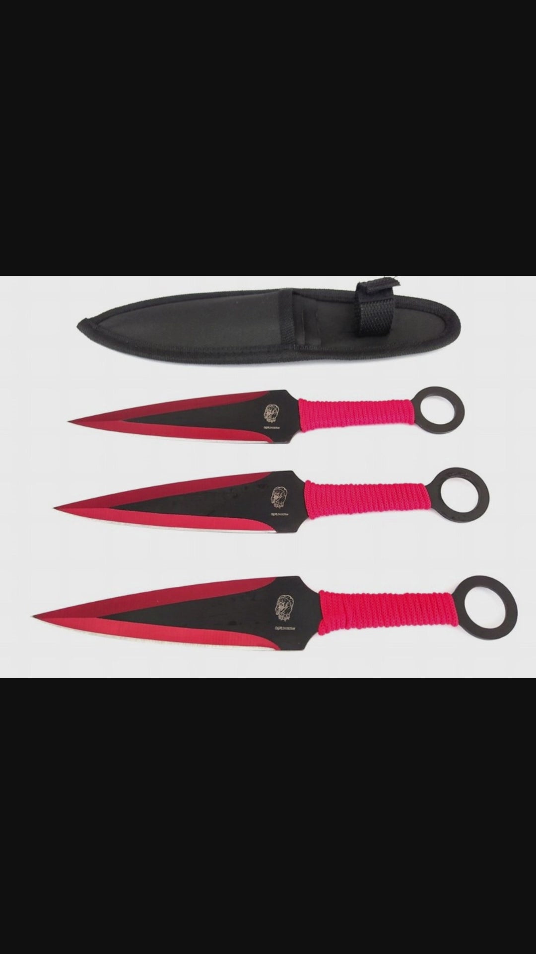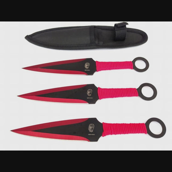 Set Coltelli da Lancio 3 Pezzi in Acciaio AISI 420 Rosso Nero con Paracord e Fodero